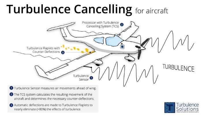 Une start-up autrichienne a mis au point une technologie capable de détecter et neutraliser les turbulences aériennes. Des volets supplémentaires, équipés de sondes atmosphériques capables de capter avec un dixième de seconde d’avance les turbulences, sont installés au niveau des ailes de l’avion.